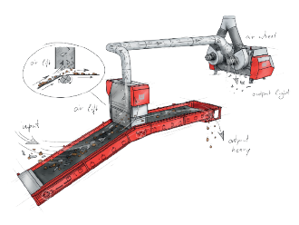 Pneumatic separation of various types of waste such as construction waste, compost , household waste , slag or scab material