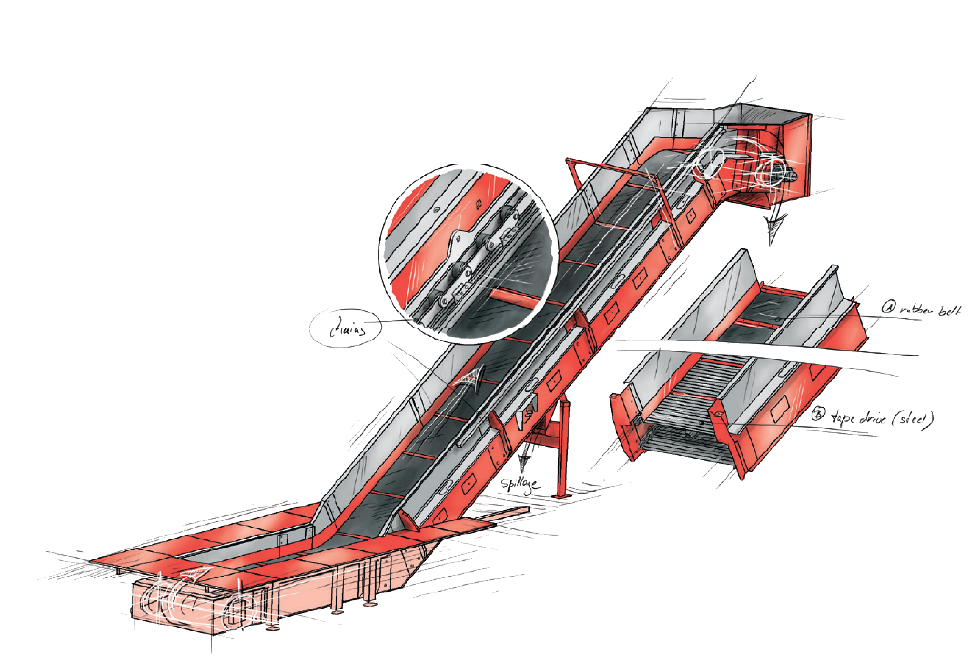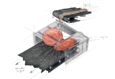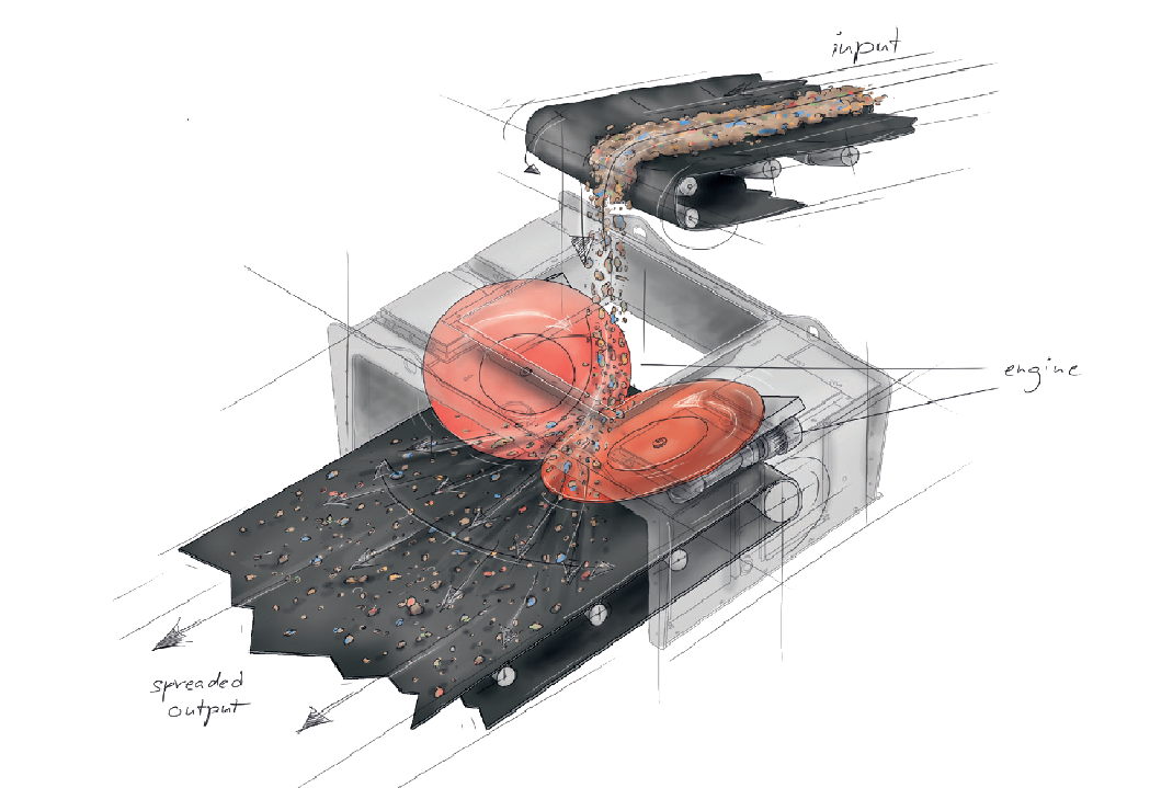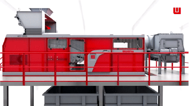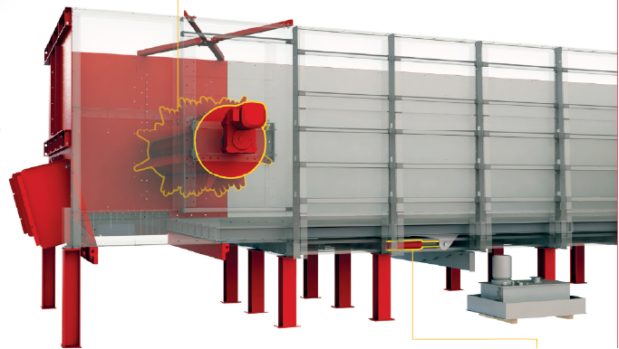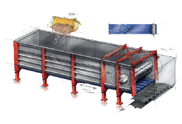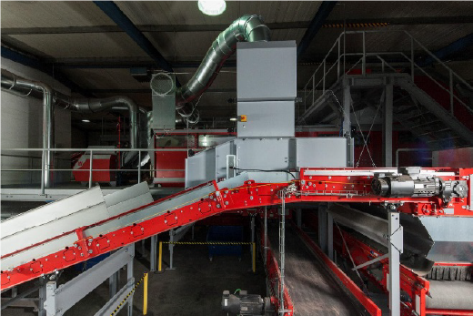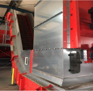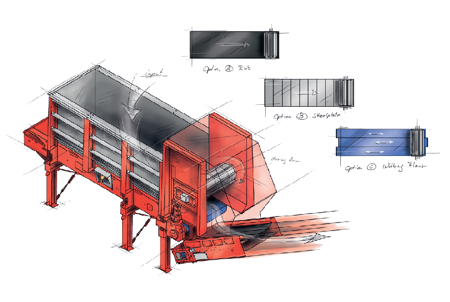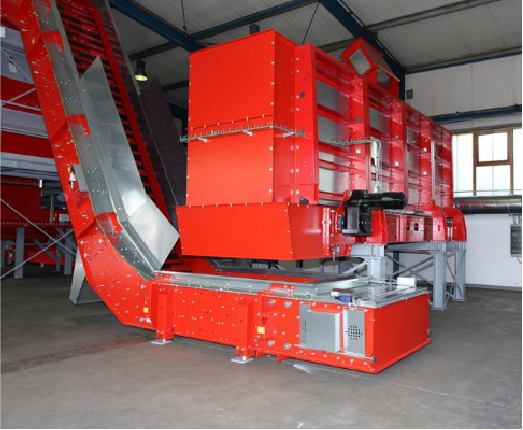 Feeding / Buffering / Bunker used for materials such as foils/PET-bottles, dry goods, such as paper/carton or sharp-edged or hot materials