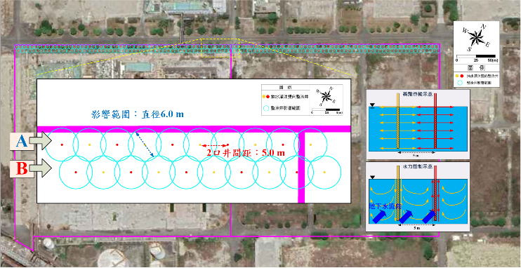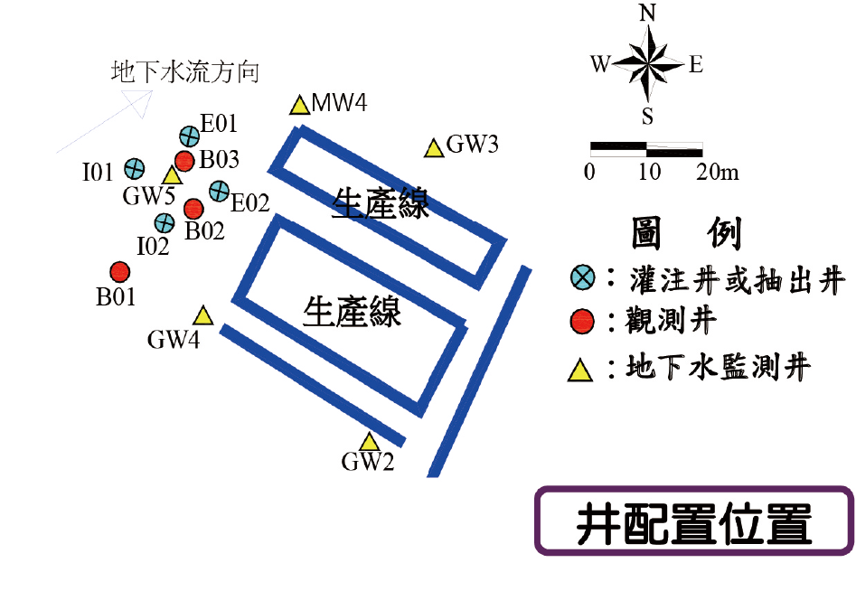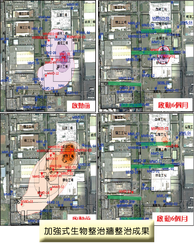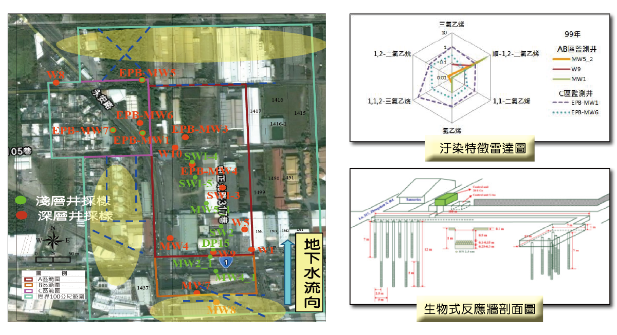 本場址規劃於廠區內設置加強式生物整治反應牆,有效攔阻污染物;此系統亦可快速改為地下水抽除處理系統,因應複合型污染。