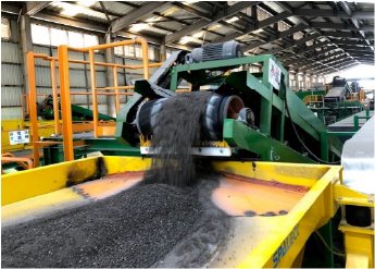 渦電流分選機是利用物質電導度之不同的→一種分選技術,產生交替變換的磁場,並與磁石轉筒轉動所產生的磁場方向相反,非鐵金屬則會因相斥作用而沿其輸送方向跳出來,與其它非金屬類物質分離開來。
