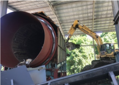 本工程因應掩埋場填埋物中含大量事業廢棄物及含水率高等特性,同時使用滾筒篩及振動篩進行二道程式篩分。