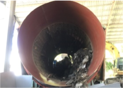 藉由選轉使廢棄物於滾筒內翻攪碰撞,且配合大孔徑(10-15cm)之篩網,快速將體積較大之廢棄物與砂土分離。